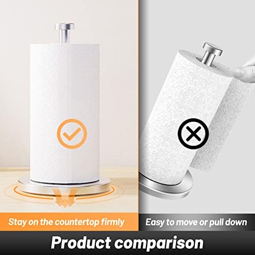 VEHHE Paper Towel Holder Countertop, Stainless Steel Paper Towel Holder Stand with Weighted Base Suction Cups, Standing Paper Towel Roll Holder for Kitchen Bathroom (Silver)