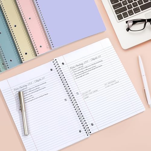 SUNEE Spiral Notebooks, 1-Subject, 5 Pack, College Ruled Paper, 8" x 10-1\/2", 70 Sheets per Notebook,3-Hole Punched Paper, Pink,Purple, Blue, Green, Yellow Spiral Lined Notebooks for School,W