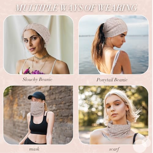 SATINIOR 5 Pieces Women's Slouchy Beanie Chemo Hat Stretch Cancer Head Wraps Sleep Head Scarf for Cancer Patient