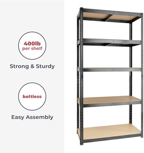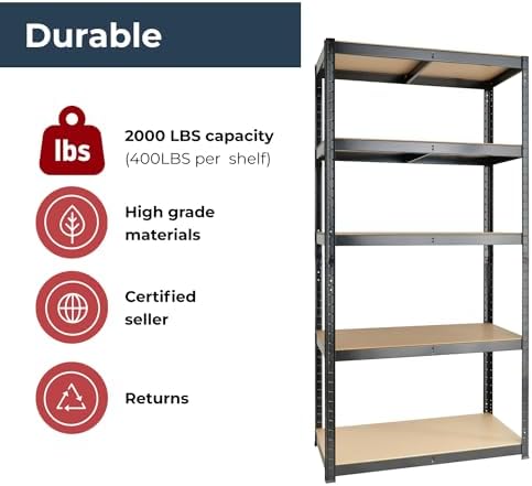 59 x 30 x 12 inches, Black 5 Tier (200LB Per Shelf), 2000LB Capacity Garage Shed Storage Shelving Units, 5 Year Warranty