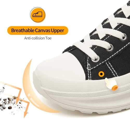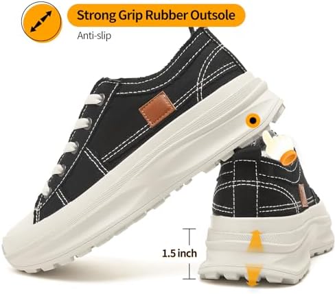 ZGR Women's Low cut Thick soled Sneakers, White Canvas Sneakers, Casual Thick soled Tennis Shoes