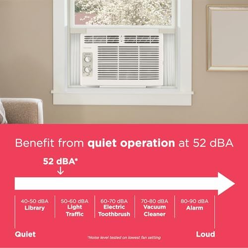 Frigidaire 5,000 BTU Window-Mounted Air Conditioner, Cools Up to 250 Sq. Ft., Quiet Operation, Effortless Temperature Control, 2 Fan Speeds, Auto Restart, White