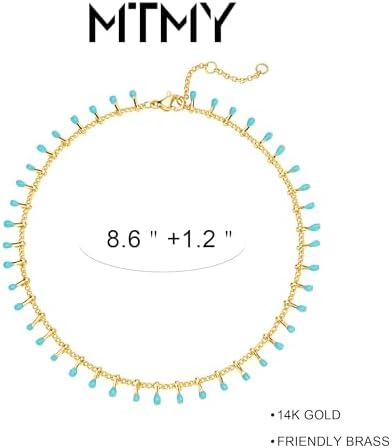MTMY Gold Anklets for Women 14K Gold Plated Tiny Bead Anklet Colorful Tassel Foot Chain Dainty Adjustable Cute Summer Beach Boho Anklets Jewelry Gift