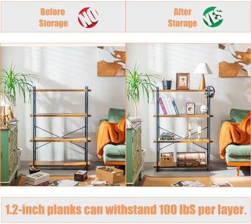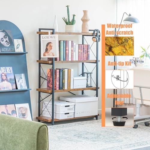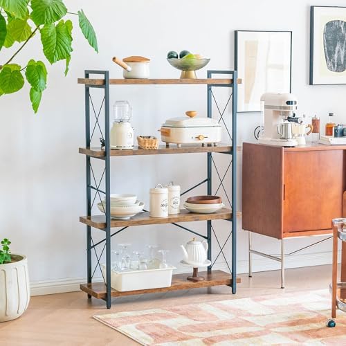 BCLOUDNEST Bookshelf, 4 Tier Bookshelf, Tall Bookcase for Living Room, Home Office and Kitchen