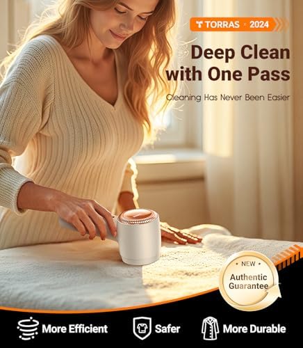 TORRAS Fabric Shaver Lint Remover, Rechargeable Electric 3-Speed Sweater Shaver Remove Fuzz, Pilling for Cashmere, Wool, Coat, Furniture, Clothes depiller with Replacement Blades, Pearl White