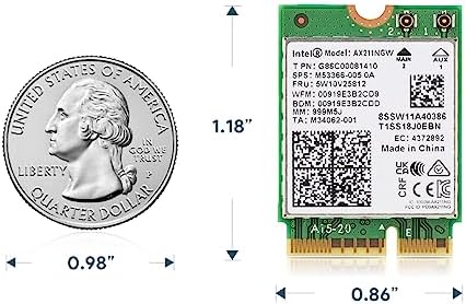 Intel AX211NGW Wi-Fi 6 Wireless Card M.2: CNVio2, Bluetooth 5.3, Tri Band 2.4\/5\/6 GHz Network Adapter for Laptop Support Windows 10\/11 (64bit) Linux Chrome OS Only Available with Gen Intel 12+ CPU