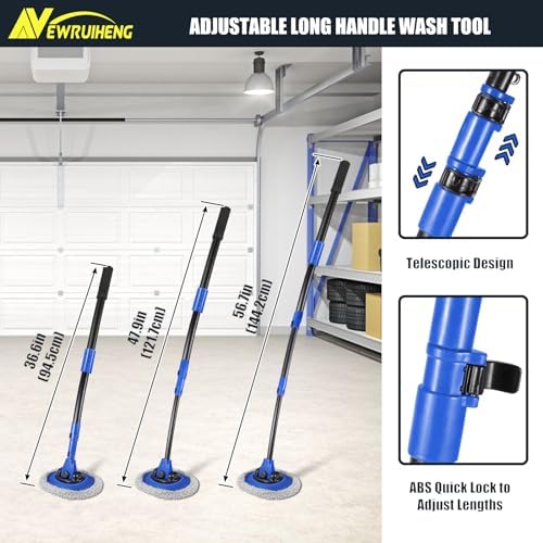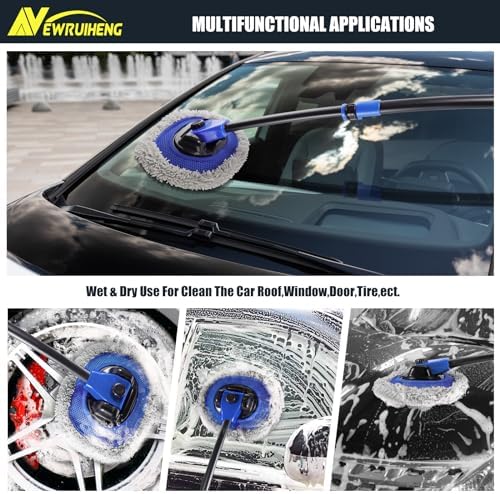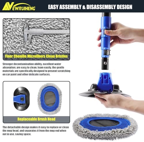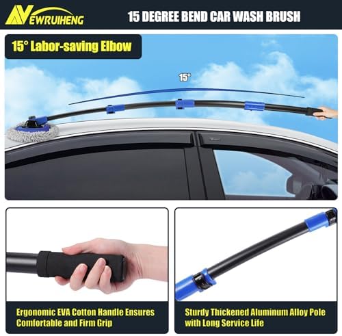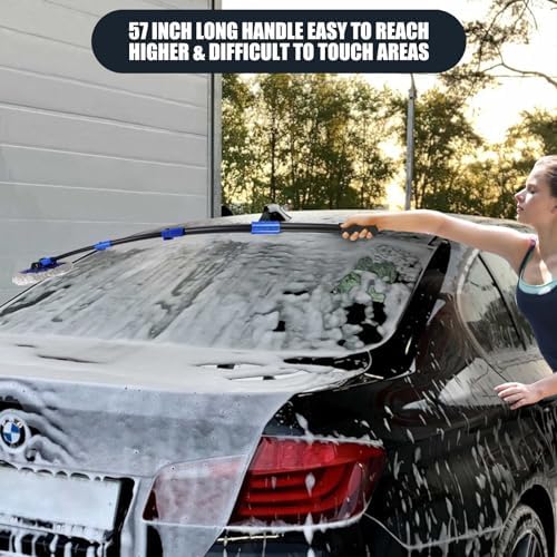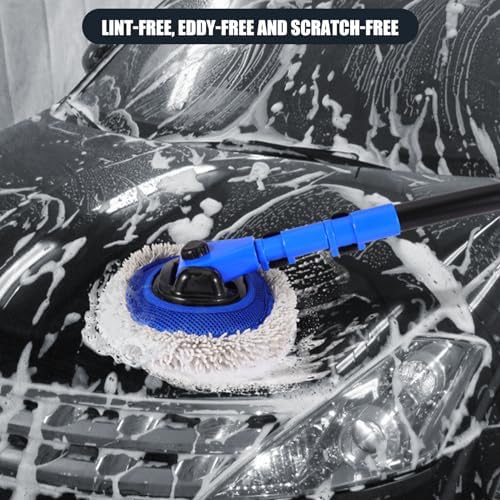 15° Bend Labor-saving Car Wash Brush with Telescopic Handle 56.7" Chenille Microfiber Soft Car Wash Mop Long Handle Car Cleaning Brush Kit with Extension Pole & Replacement Head for Clean Car