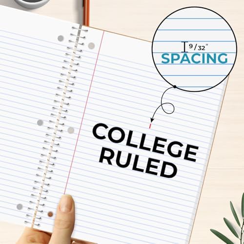 Rosmonde Spiral Notebook, 12 pack, 1 theme, university grid, 70 sheets, 8 x 10-1/2 inches, 3-hole punch, loose university grid spiral notebook, suitable for schools, single subject spiral notebook loo