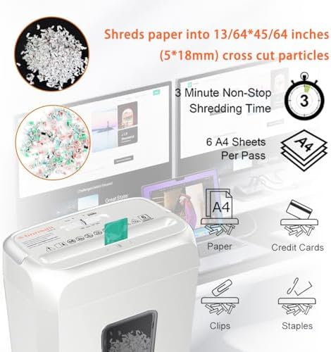 Bonsaii low-noise operation shredder, 6 cross cut credit card shredders, home office document handle, mail staples, 3.4 gallon garbage basket, easy to carry handle, white (C237-) B)