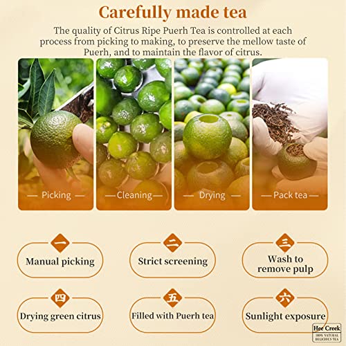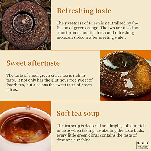 Hee Creek Xinhui Tangerine Peel Pu-erh Tea 180g\/6.35oz Small Green Mandarin Yunnan Palace Pu'er Citrus Tea Canned XiaoQingGan Chinese Pu'er Gift 普洱小青柑 陈皮普洱茶 熟茶 云南普洱茶