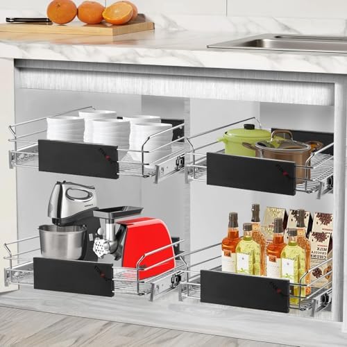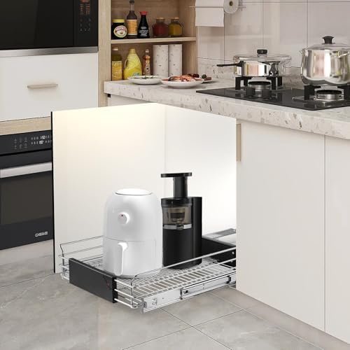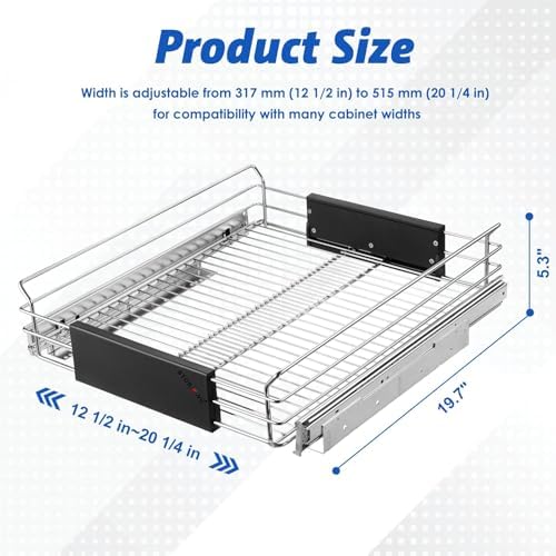 STORKING Expandable Pull Out Cabinet Organizer, Slide Out Drawers for Kitchen Cabinets, Heavy Duty Storage Drawers, Chrome Plated Cabinet Wire Shelf, Adjustable Width 12.5~20.2" W x 17.3" D