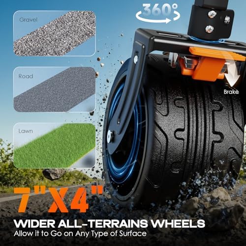 Navatiee Big Wheels Collapsible Wagon Cart Foldable, Heavy Duty Beach Wagon with Silent All-Terrain Wheels, Folding Utility Grocery Cart with Side Pocket and Brakes for Camping Garden Sports, Black