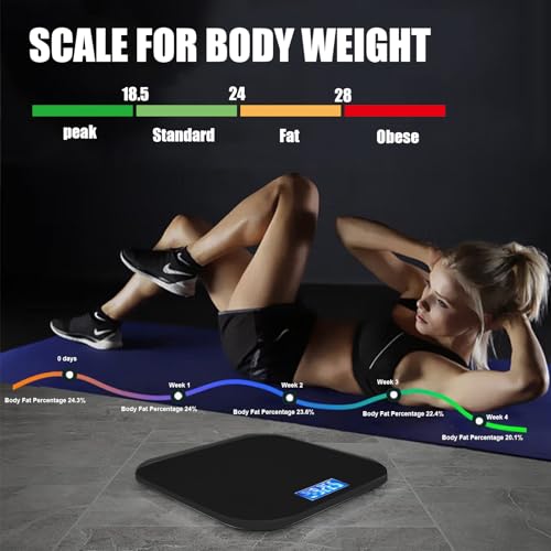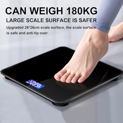 Smart Scale for Body Weight Digital Bathroom Scale with Blue LCD Backlight Display Highly Accurate Body Weight Scale Body Fat Scale Temperature Indication Corner Design 400lbs (Black)