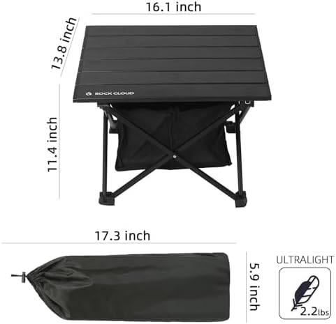 ROCK CLOUD Upgraded Portable Camping Table Ultralight Aluminum Camp Table Folding Beach Table with Storage Bag for Camping Hiking Backpacking Outdoor Picnic