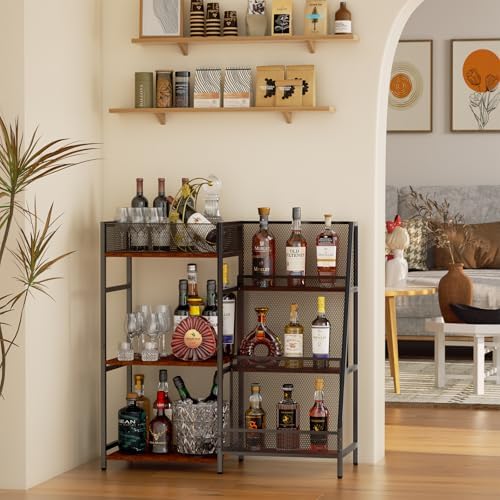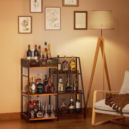 Liquor Stand, 6-Tier Stepped Bar Cabinet Freestanding Floor for Whiskey & Wine Bottles, Versatile Corner Bar Stand with Fences, Mini Liquor Cabinet Perfect for Home Bar or Kitchen