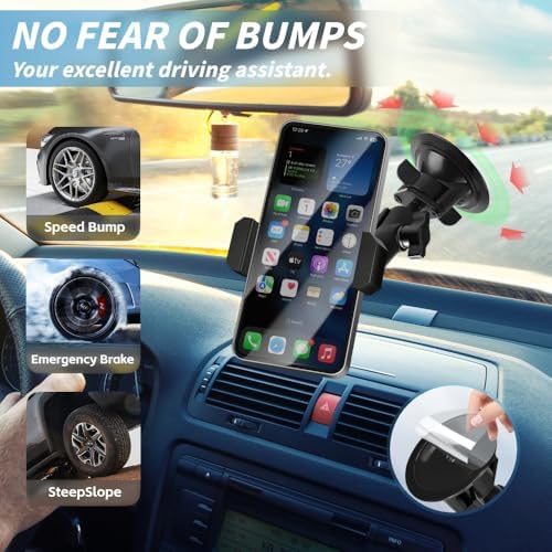 RomHaus Suction Cup Car Phone Holder, Ultra-Durable Metal Phone Holders for Your Car Windshield, 360° Rotation Car Mount for iPhone\/Samsung\/All Smartphone