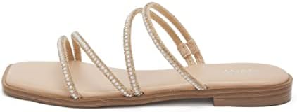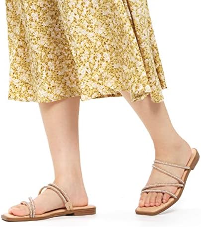 vodvob Women's Rhinestone Flat Sandals Slip on Memory Foam Sandals Open Toe Slide Sandals