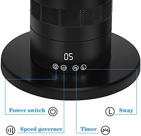 Simple Deluxe Portable Bladeless Tower Fan, 10 Speeds Settings, 10-Hour Timing Closure, Low Noise, Lightweight, 24 Inches, Black