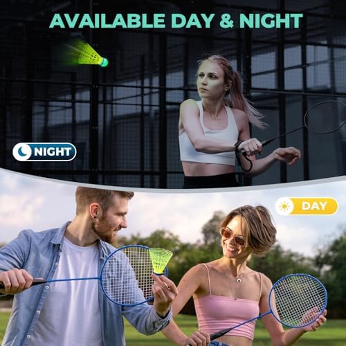 HIRALIY LED Badminton Birdies 6/12 PCS, 360 Nylon Glow in The Dark Badminton Shuttlecocks for Baseball Backyards Practice, 2 Color Plastic Light Up Birdie Ball Set for Indoor Outdoor Sports Activities