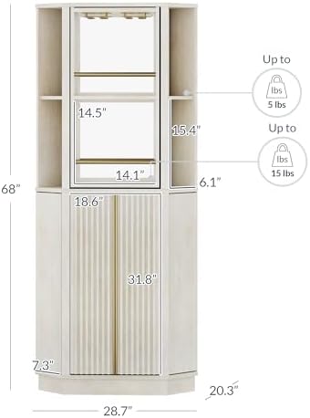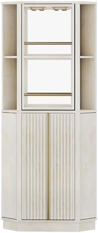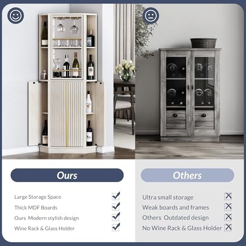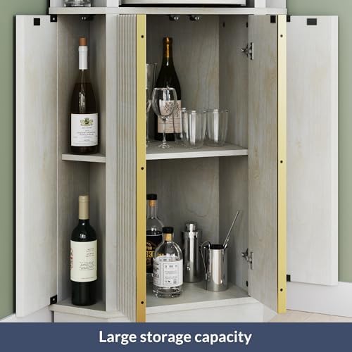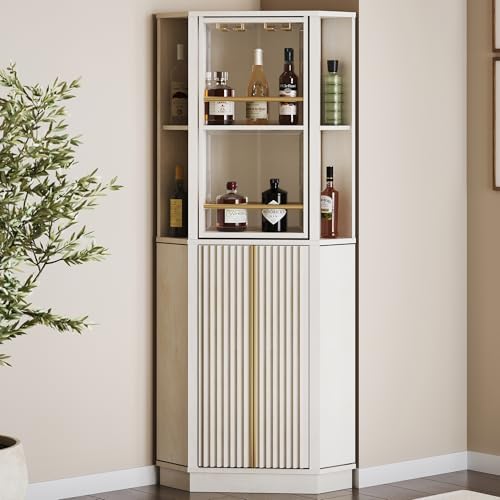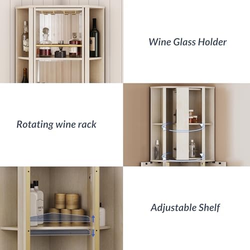BELLEZE 68" Tall Farmhouse Wine Cabinet with Rotating Wine Rack, Corner Bar Cabinet, Modern Home Bar Liquor Storage Cabinet for Dining Room, Living Room & Kitchen - White Sand