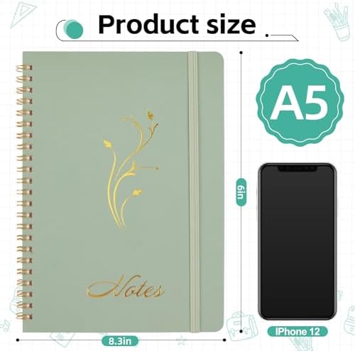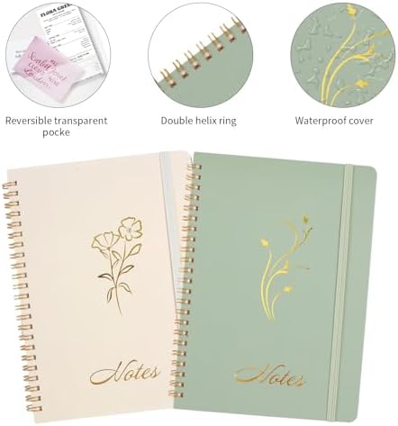 Joyberg Aesthetic Spiral Notebook, 2PCS Cute Notebook, 8.3" x 6" Notebook For Women, A5 Spiral Journal Notebook for Office\/School\/Home (Green & Beige)