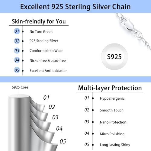Jewlpire Italian 1mm 1.2mm Cable Chain 925 Sterling Silver Chain Necklace for Women, 14K Plated Gold Chain for Women Thin & Dainty & Sturdy Women's Chain Necklaces, 14 16 18 20 22 24 Inch