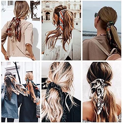 CHLINS 27 Inches Silk Feeling Square Head Scarf - 4 Pcs Satin Square Head Scarves for Women Hair Bandanas