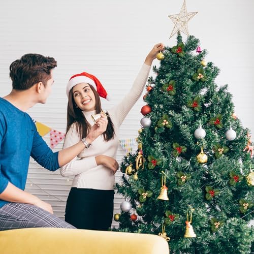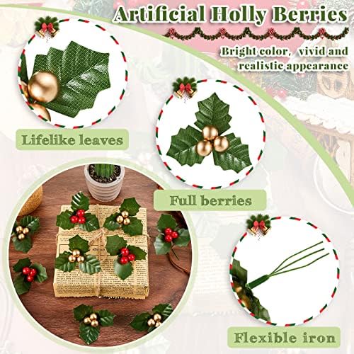Canlierr 50 Pieces Christmas Holly Berries for Crafts Faux Berries Flowers and Holly Leaves Christmas Wreath Fillers for Vase Fillers Floating Candle Table Centerpiece(Red, Gold)