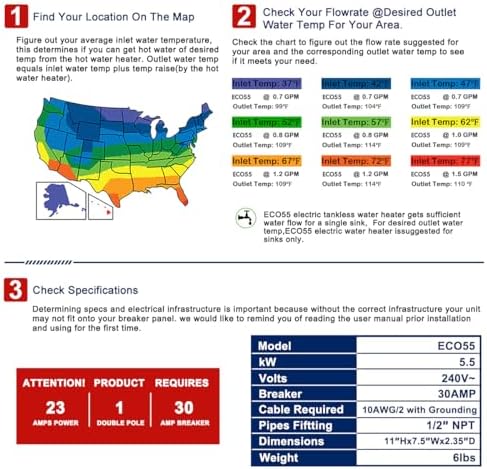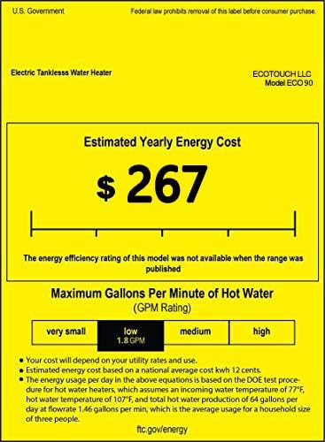 Tankless Water Heater 5.5kw 240V, ECOTOUCH Point-of-Use Digital Display,Electric Instant Hot Water Heater with Self-modulating,Overheating Protection,White