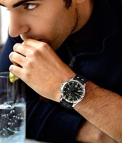 Stuhrling Original Mens Leather Watch -Aviation Watch, Quick-Set Day-Date Leather Band with Steel Rivets,