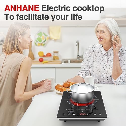 Electric Cooktop 110v,Single Burner Electric Stove Infrared Cooktop Hot Plate 1800W,4-Hour Setting,Black Crystal Glass Surface Compatible for All Cookware