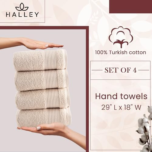 HALLEY Turkish Cotton Towels (Pack of 4) Hand Towels Super Soft Highly Absorbent 100% Cotton Towels for Bathroom and Kitchen for Mother\u2019s Day (Ivory White)
