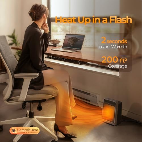 ROSEKM Space Heaters for Indoor Use, 1500W Portable Electric Heater with Thermostat, Ceramic Heater for Room Bedroom Office Under Desk with 3 Heating Levels, Safe Tip-Over Protection