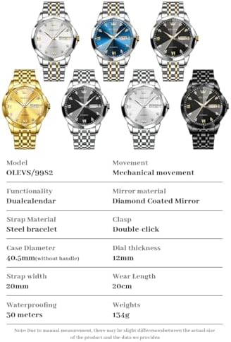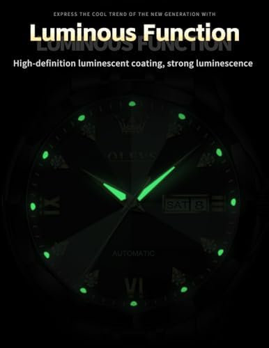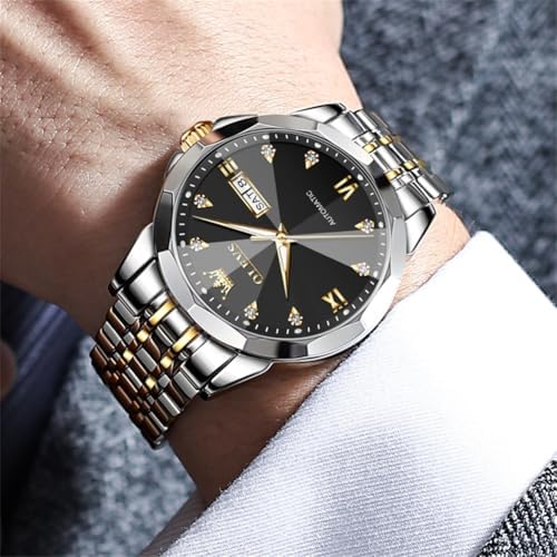 OLEVS Automatic Watches for Men Business Dress Watch Mechanical Stainless Steel Waterproof Self Winding Classic Date Luxury Diamond Men Wrist Watch