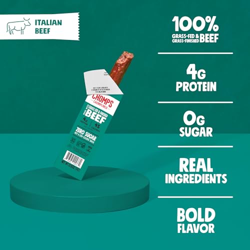 Chomps Snack Size Grass-Fed Italian Beef Jerky Snack Sticks 0.5oz 24-Pack - Keto, Paleo, Whole30, 4g Lean Meat Protein, Gluten-Free, Zero Sugar Food, Non-GMO Chomplings