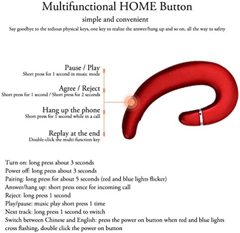 Sunffice Ear Hook Bluetooth Wireless Headphone,Non Ear Plug Headset with Microphone,Single Ear Noise Cancelling Earphones Painless Wearing for Android Smartphones,iPhone14 13 12 11 X 8 (Red)