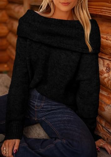 PRETTYGARDEN Women's Off The Shoulder Sweater Long Sleeve Tops 2025 Fall Loose Knit Pullover Sweaters Winter Clothes
