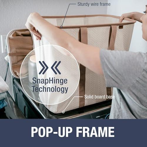 CleverMade Collapsible Laundry Basket Hamper - Navy Noir Cream 2-Pack 64L - Space Saving Storage Organizer with Handles Foldable Home Organization
