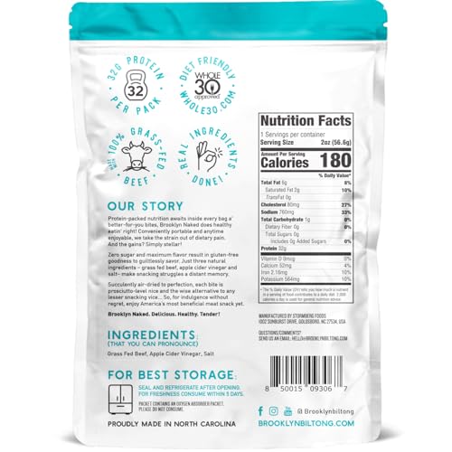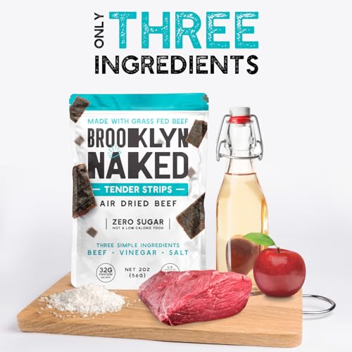 Brooklyn Naked Tender Strips - (8 oz, Pack of 2) \u2013 Chewy Air Dried Grass Fed Protein Snacks \u2013 Sugar Free Beef Jerky Alternative \u2013 Organic Beef Snacks \u2013 Whole 30 Approved Foods, AIP