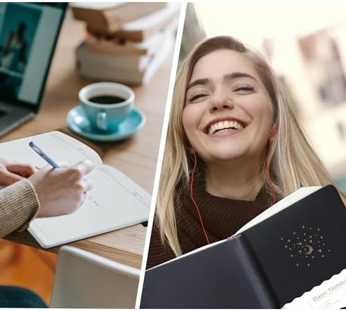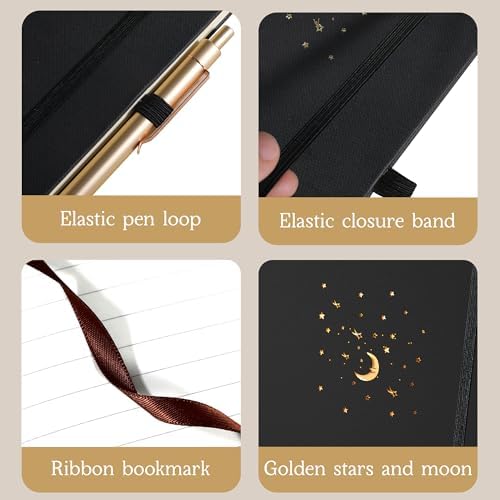 CAGIE Lined Journal Notebook for Work, 196 Pages, 5.7" x 8.3", Hardcover Notebook Journals for Writing Women Men Note Taking Diary with Pen Loop (Black Ruled), Gifts