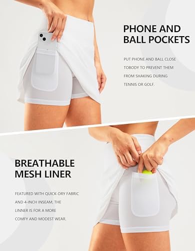 SANTINY 16" Golf Skorts Skirts for Women Zipper Pockets Women's High Waisted Tennis Skirt Athletic Skort