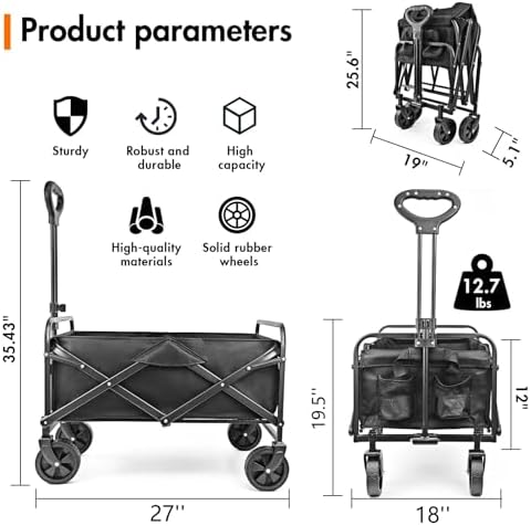 NEOTEC Collapsible-Folding-Wagon - Wagon Cart Heavy Duty Foldable Outdoor Utility with Silent Universal Wheels, Adjustable Handle for Camping