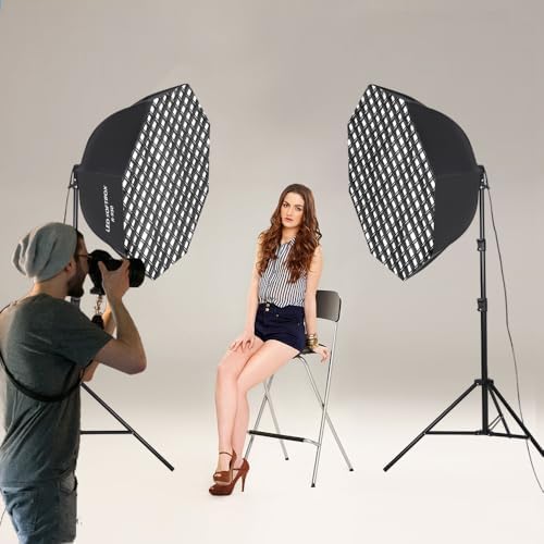 GSKAIWEN 110W Octagonal Parabolic Softbox Lighting Kit, 37.4 "\/95cm Soft Box with Honeycomb Grid\/Remote Control\/Stand for Studio Light, Video Recording, Portraits, Product Photography, Live Str