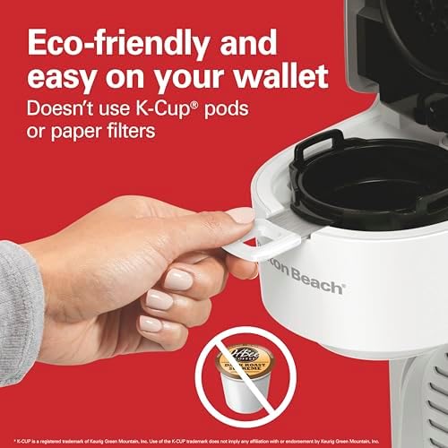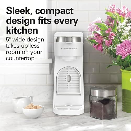 Hamilton Beach 47621 The Scoop Single Serve Coffee Maker & Fast Grounds Brewer for 8-14oz. Cups, Brews in Minutes, Next Gen, White