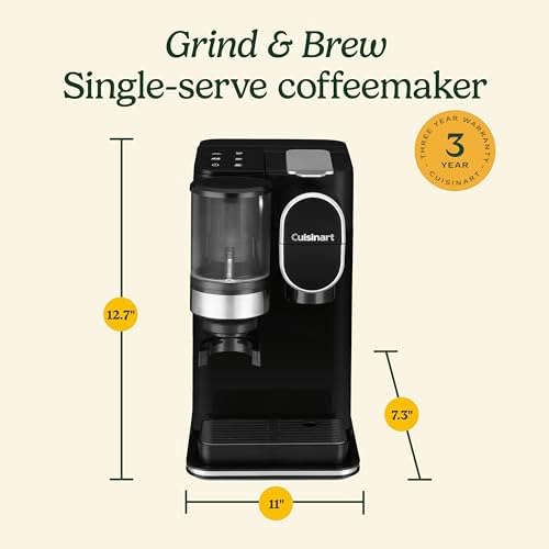 Cuisinart Single-Serve Coffee Maker + Coffee Grinder with 8 oz., 10 oz., and 12 oz. Serving Size, Compatible with Single-Cup Pods, 48-Ounce Removable Reservoir, Stainless Steel, DGB-2