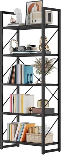 DWVO 5 Tier Bookshelf, Industrial Bookshelves Open Shelf Bookcase, Storage Shelves Organizer Display Rack for Bedroom,Living Room,Office,Kitchen, Charcoal Gray