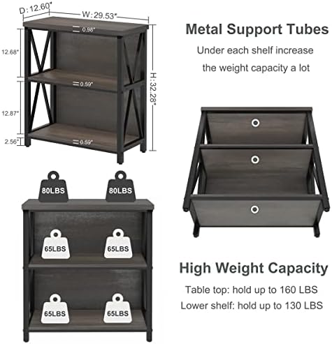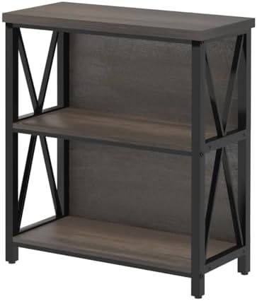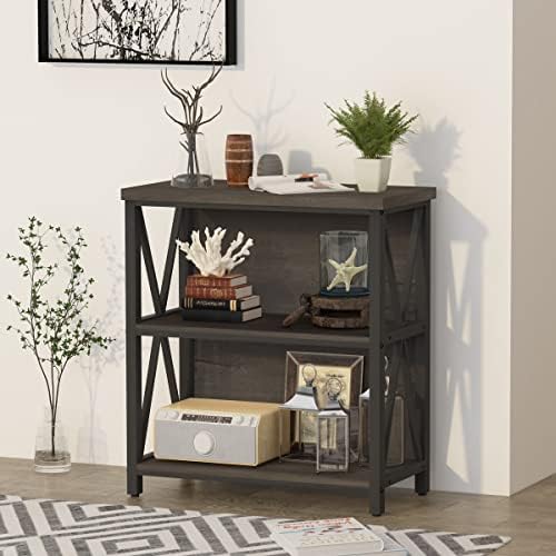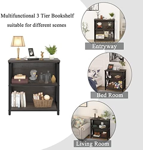FATORRI Rustic Small 3 Shelf Bookshelf for Living Room, Industrial Low Wood Bookcase, Farmhouse Short Book Shelf for Small Space (Walnut Brown)