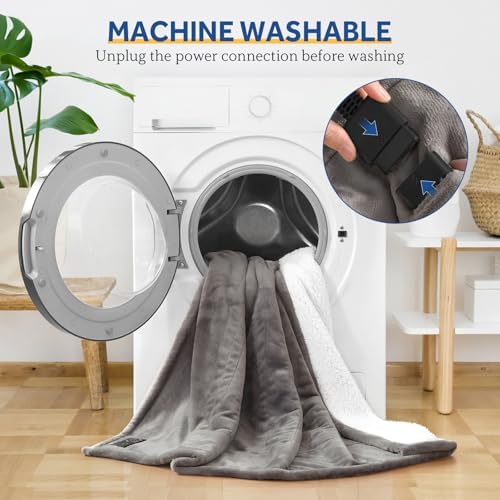 Sealy Heated Blanket Throw with Built-in Button Controller, Reversible Flannel to Sherpa Electric Blanket with 2-10 Hours Auto-Off & 4 Heating Levels, Over-Heat Protection, 50x60 inch, Light Grey