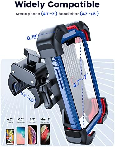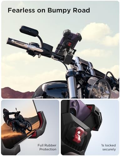 JOYROOM Motorcycle Phone Mount, [1s Auto Lock][100mph Military Anti-Shake] Bike Phone Holder for Bicycle, [10s Quick Install] Handlebar Phone Mount, Compatible with iPhone, Samsung, All Cell Phone