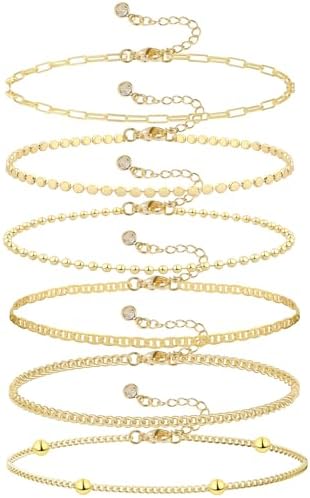 JECOMY Dainty 14K Gold Bracelets for Women - Waterproof Stackable Gold Bracelet Set - Perfect for Stylish Women